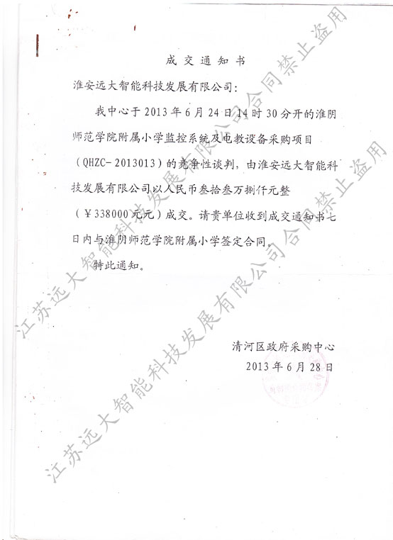 淮安小学成交通知书