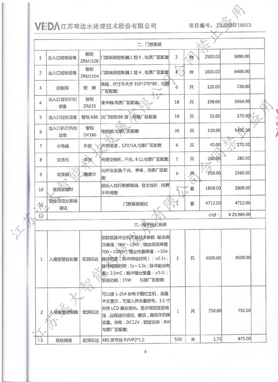 >> 视频监控门禁电子围栏系统采购-江苏唯达水处理技术股份有限公司