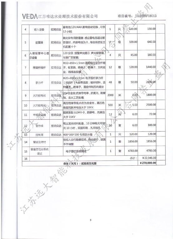 视频监控门禁电子围栏系统采购-江苏唯达水处理技术股份有限公司