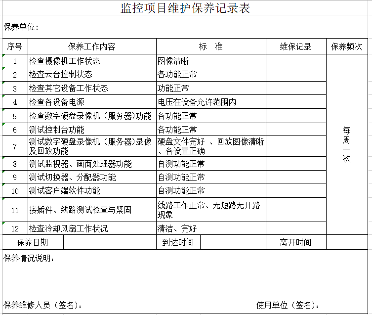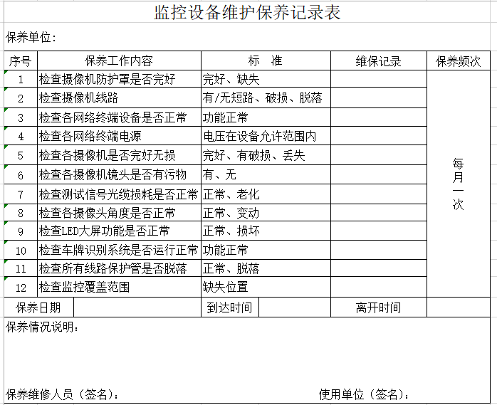 监控维护保养记录表